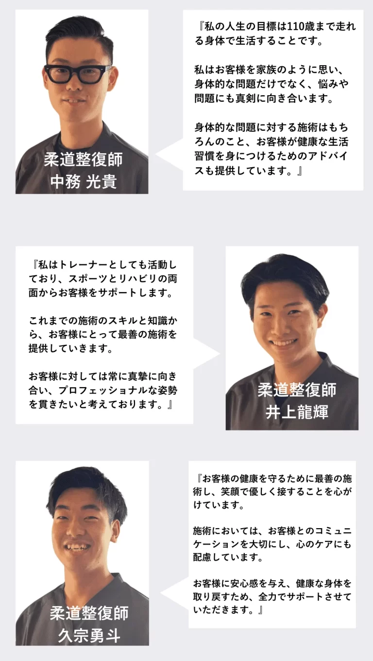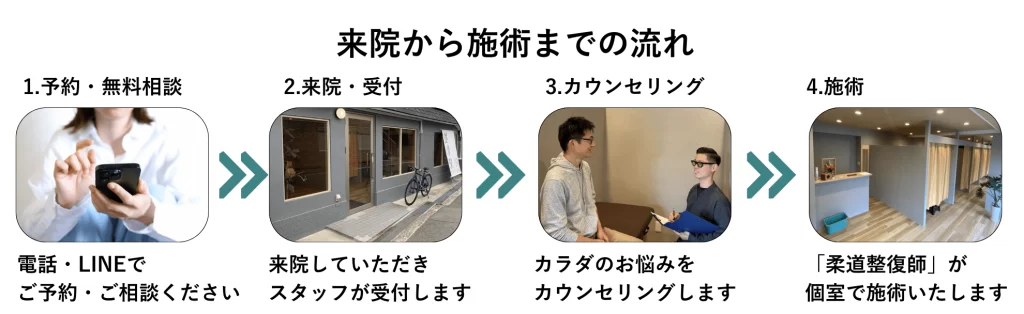 当院は国家資格「柔道整復師」のプロフェッショナルがカウンセリング・施術のご支援させていただきます。