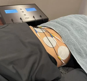 EMSとは皮膚につけたパッドから、直接筋肉に電気刺激を与えて筋肉を動かし、部分的なトレーニングができる機器です。